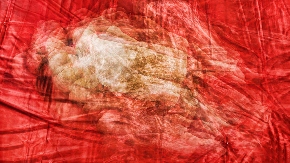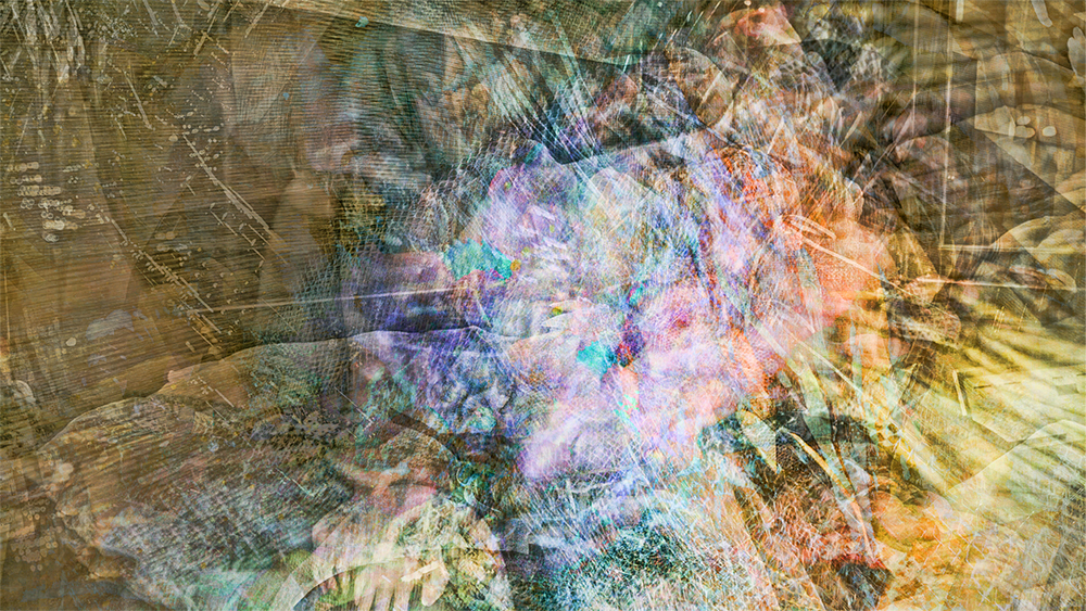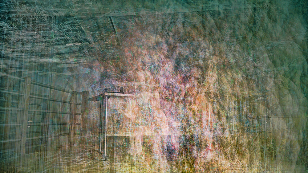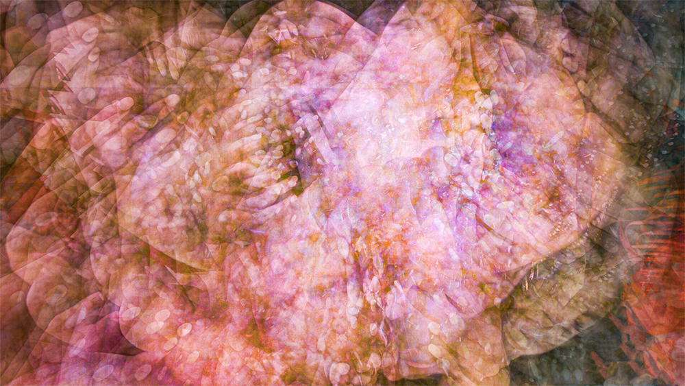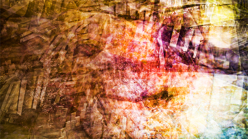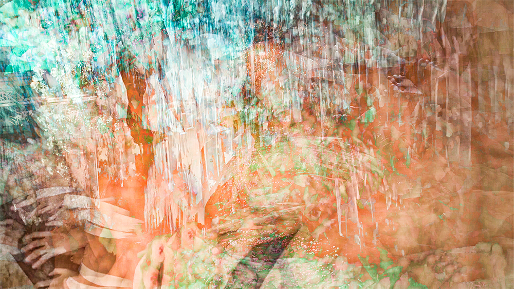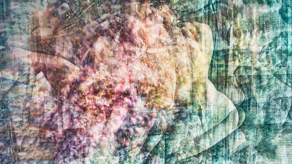 インターネット上に存在するポルノ動画を約5000枚の画像に一旦解体。その後、すべての画像を積層することで1枚の画像として制作しています。