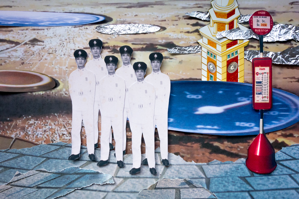 「舅父」第一部的拼貼作品是對消失和死亡的內在探索,也是對我去世舅父的關懷。通過與他的物品的身體接觸和感官聯繫,我將他留下來的巴士雜誌、他拍下的巴士照片、其他物品和舊家庭照片拼湊在一起,並構成一幅幅的拼貼作品,以想像舅父轉世中的故事。