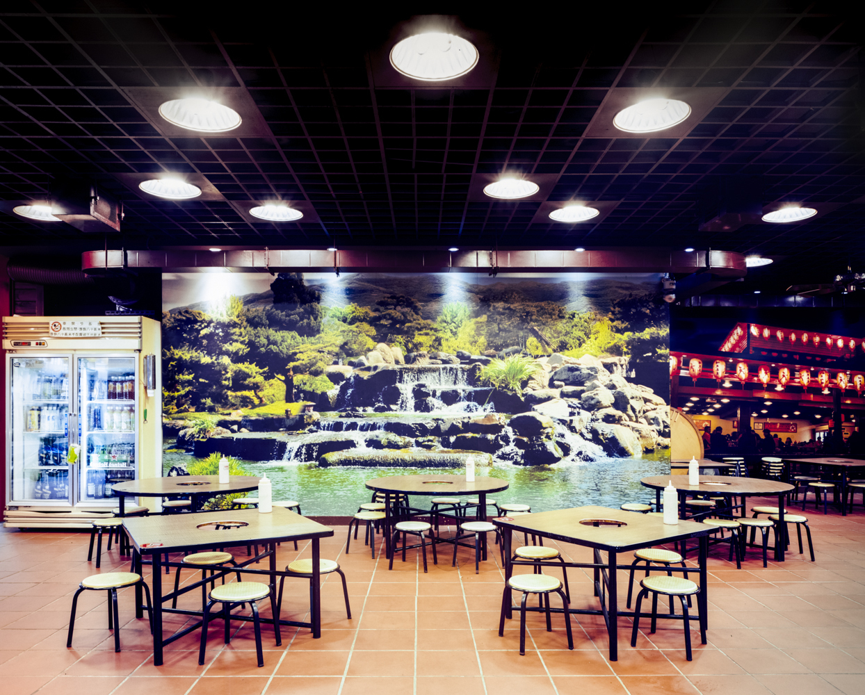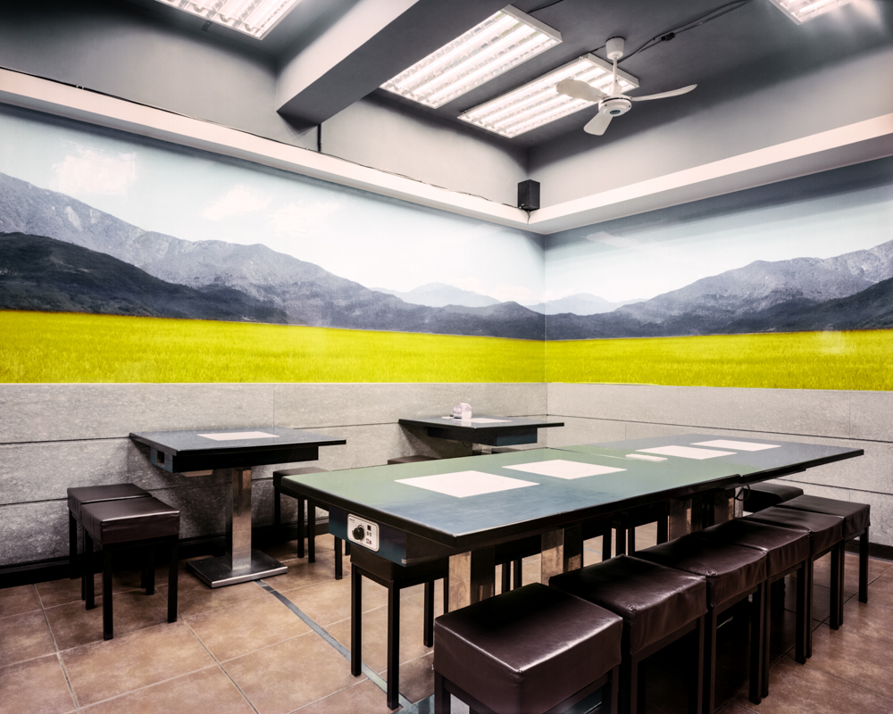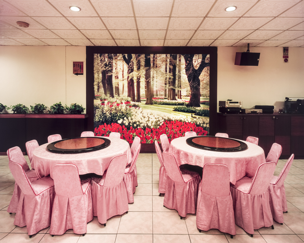 The Picnic, captured with 4x5 large format films, collects a phenomenon of common visual culture. By using landscape photos from online galleries as a part of decorations in restaurants, the owners try to create a romantic scenario of dining in nature. Such decorations also related to the Fengshui culture in Asia, water often symbolizes wealth and mountains means backings. I collected this type of phenomenon to show the relationship between space and landscape wallpapers, reflecting Fengshui culture and visual culture of Taiwanese.