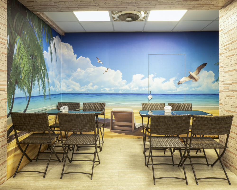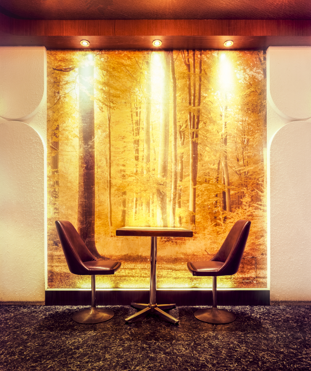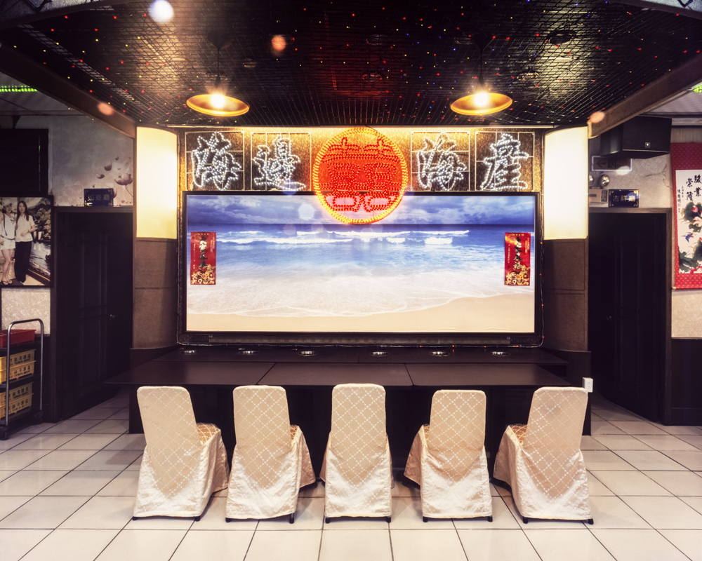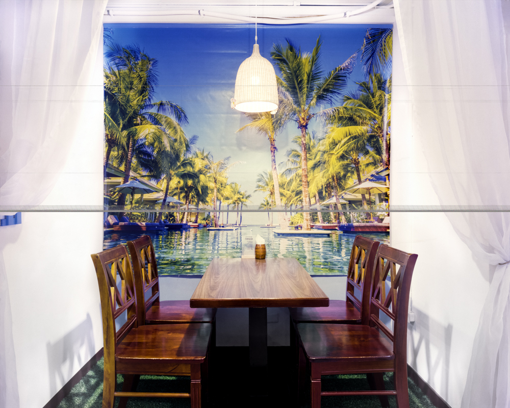 The Picnic, captured with 4x5 large format films, collects a phenomenon of common visual culture. By using landscape photos from online galleries as a part of decorations in restaurants, the owners try to create a romantic scenario of dining in nature. Such decorations also related to the Fengshui culture in Asia, water often symbolizes wealth and mountains means backings. I collected this type of phenomenon to show the relationship between space and landscape wallpapers, reflecting Fengshui culture and visual culture of Taiwanese.