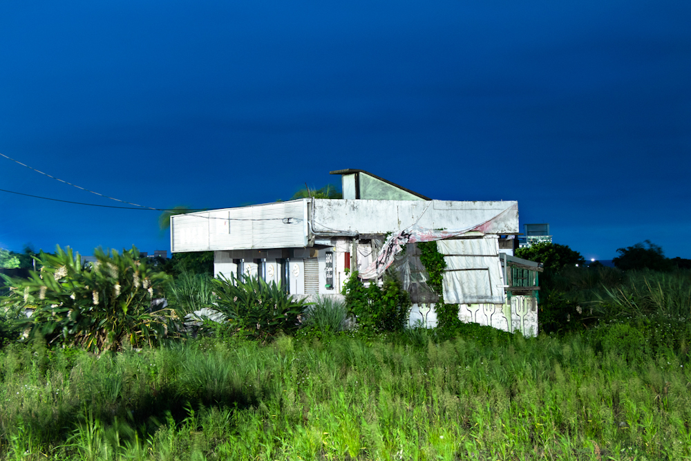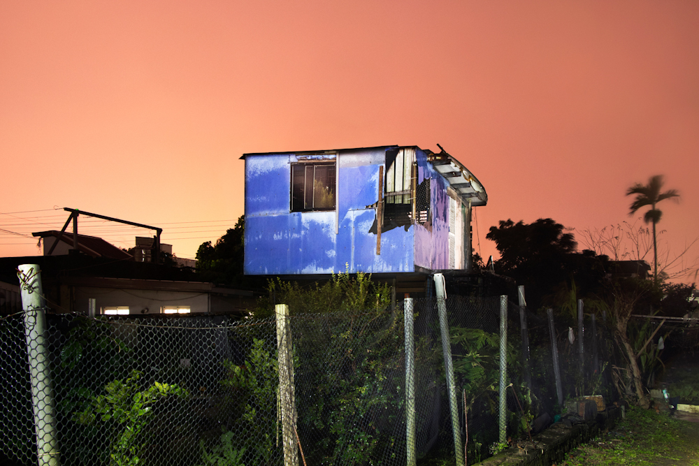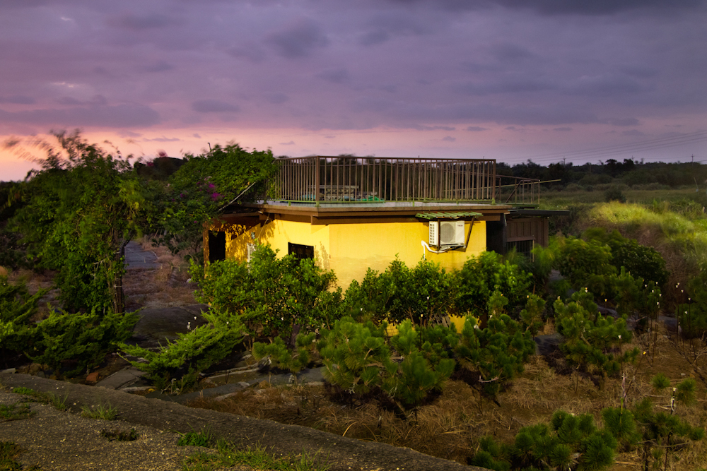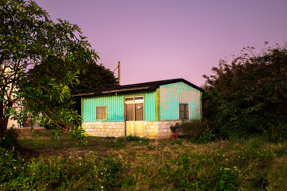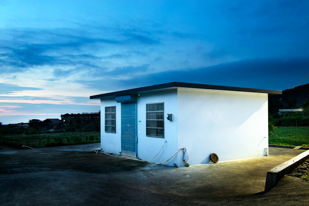 單獨佇立的小房子,在現實中與人們連結,並紀錄下人的生活依存,而在進夜晚前的過渡時刻,似乎形成一種非現實感的物件,另類的成為點綴土地的人造物風景。