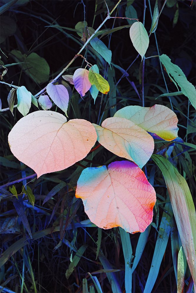Using a machine called a camera, I am thinking about human beings. For example, humans can see the world with wavelengths in the range of about 400~800 nanometers of electromagnetic waves, which are called visible light. Short wavelengths appear blue and long wavelengths appear red because the electrical stimuli received by the retina are projected into the brain as images. That means we also use our eyes and brain functions to see the world, and regardless of our choices, the world is already defined, and there are boundaries to the world that we can imagine. Plants and insects are connected to the world and to other life in a different way than we are, as in Uexküll's Umwelt. The network of plants communicating with each other through mycelium can be described as a kind of “Hive mind”, The individual and the whole are said to have the same consciousness, like Arthur c Clarke's Palladians.. It encourages us to commune with nature as a "kasokeiki-thing" that spreads out before our feet, without traveling into space to commune with extraterrestrial life forms.